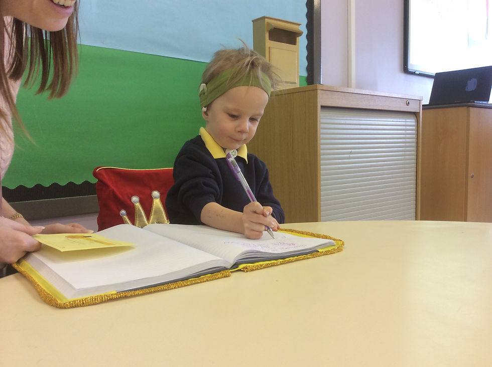 Signing the Golden Book... Where we record pupil achievement.