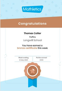 Bronze Mathletics certificates for this week. Well done everybody! Who can beat these scores? Longwill AdminMay 15, 20200 min read