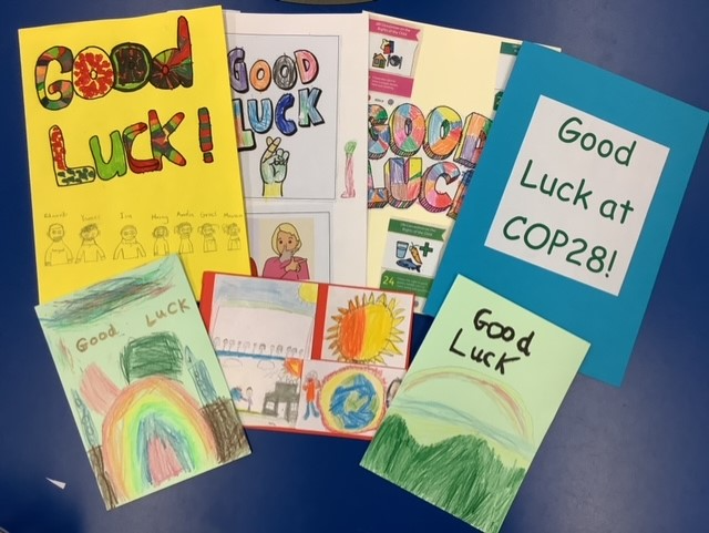 We are campaigning for the government to adapt schools and protect us from the changing climate. Look at our amazing cards that we are sending to the Minister of Energy, ready for the COP28 meeting.