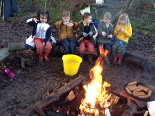 They made a fire to cook their hot-dogs and hot chocolate. They also built a den to help them keep warm.